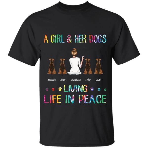 "A girl and her dogs/cats living life in peace" girl and dog, cat personalized T-Shirt T2