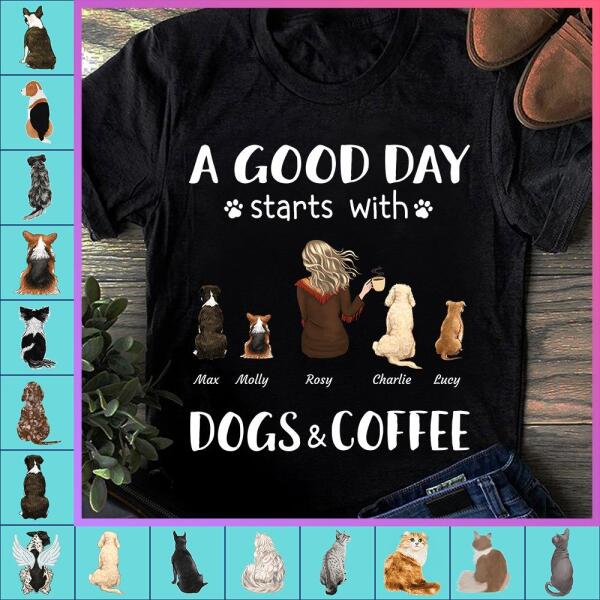 "A good day starts with dogs/cats & coffee" personalized T-Shirt