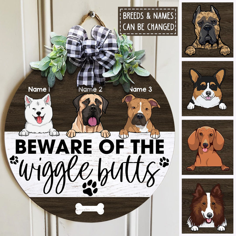 Beware Of Wiggle Butts, Wooden Door Hanger, Personalized Dog Breeds Door Sign, Dog Lovers Gifts, Front Door Decor