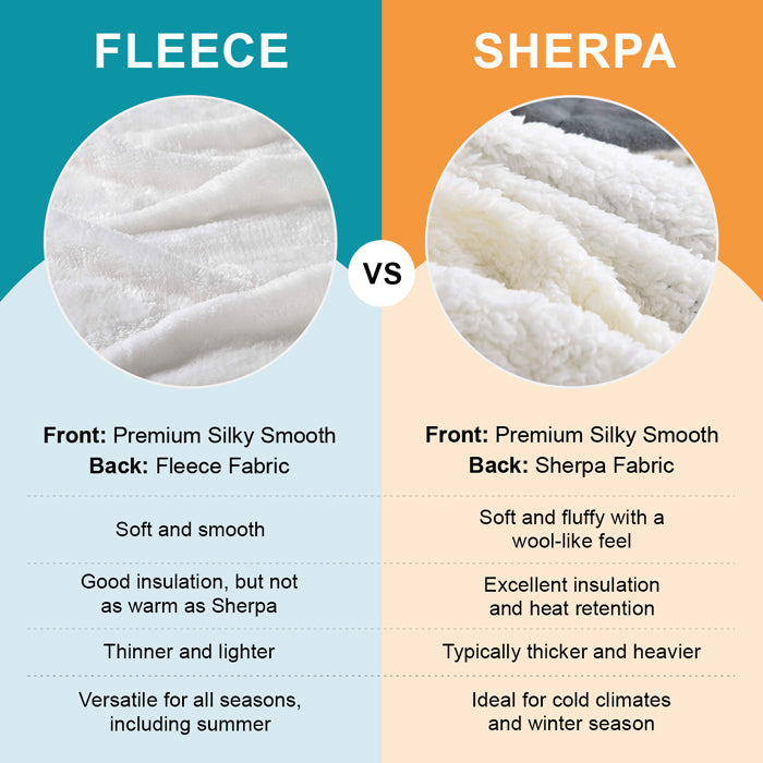 - There are 2 material options - Fleece and Sherpa. Choose the material that fits your purpose.