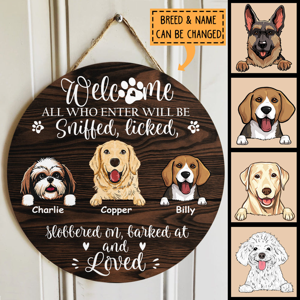 Custom Wooden Sign, Gifts For Dog Lovers, All Who Enter Will Be Sniffed And Loved Welcome Signs