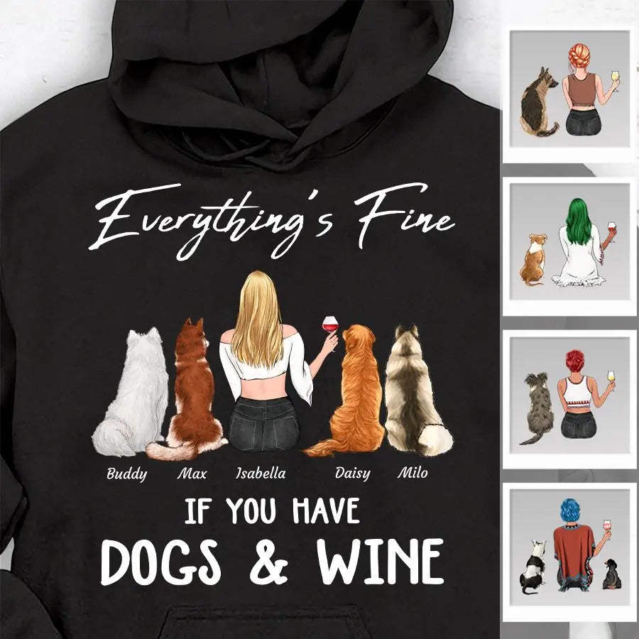 Everything’s Fine If You Have Dogs & Wine Personalized T-Shirt TS-PT2104
