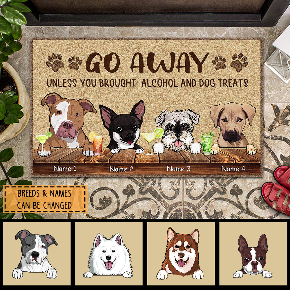 Go Away Unless You Brought Alcohol And Dog Treats, Beige Background, Dog & Beverage, Personalized Dog Lovers Doormat