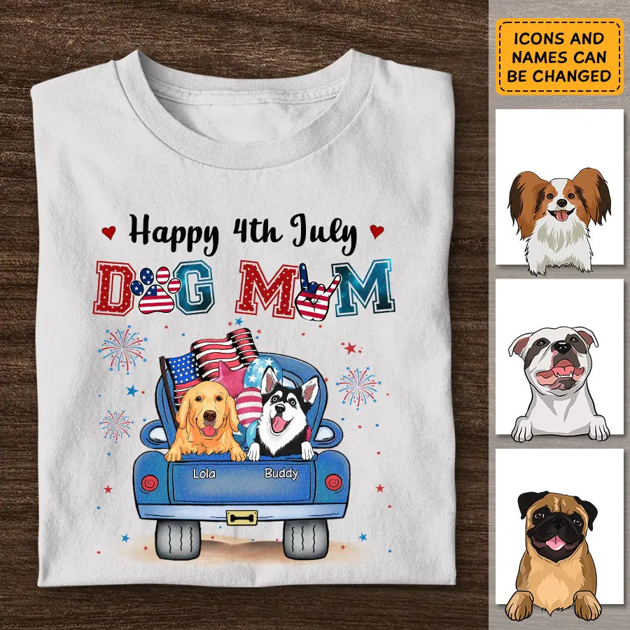 Happy 4th July Dog Mom- Personalized T-Shirt - 4th July TS - PT3841