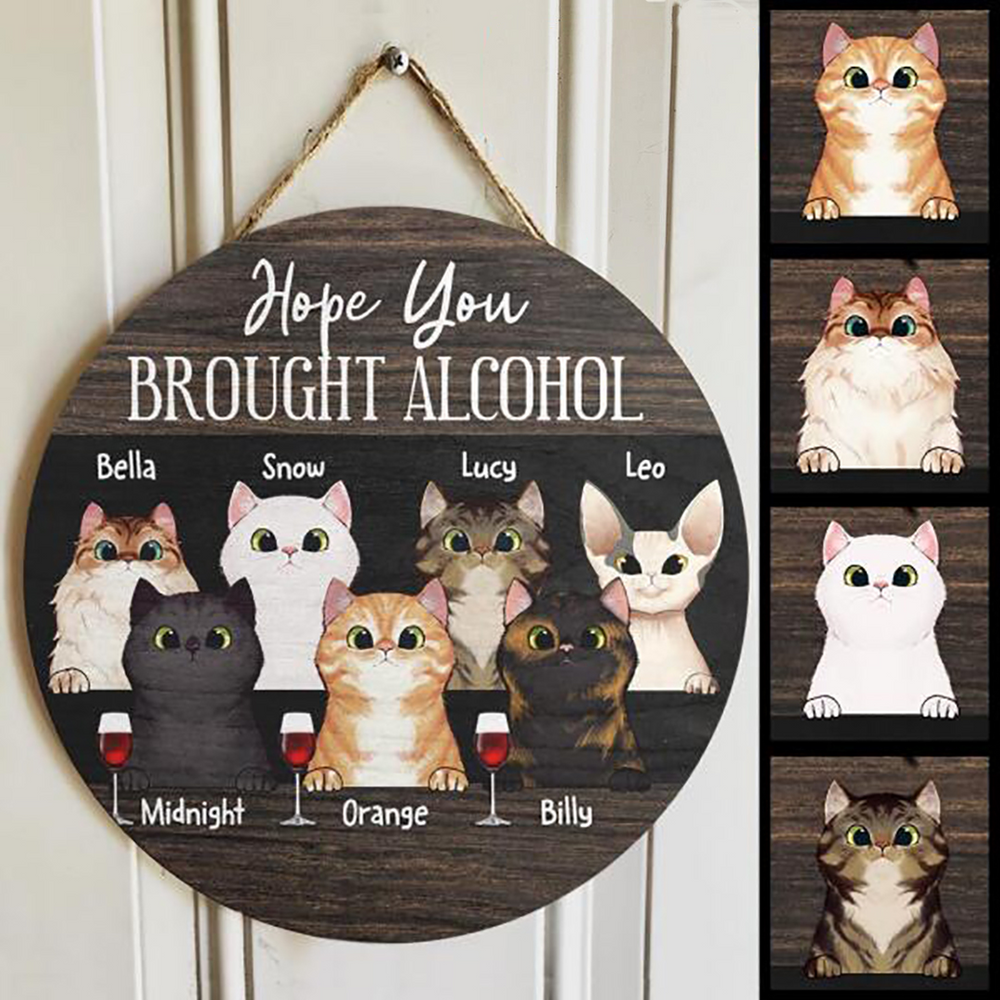Hope You Brought Alcohol - Cats And Beverage - Personalized Cat Door Sign