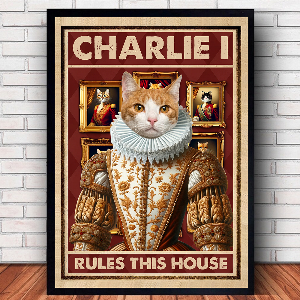 Funny Upload Photo Cat Dog Pet Rules This House Personalized Poster Print HTN14DEC23KL1