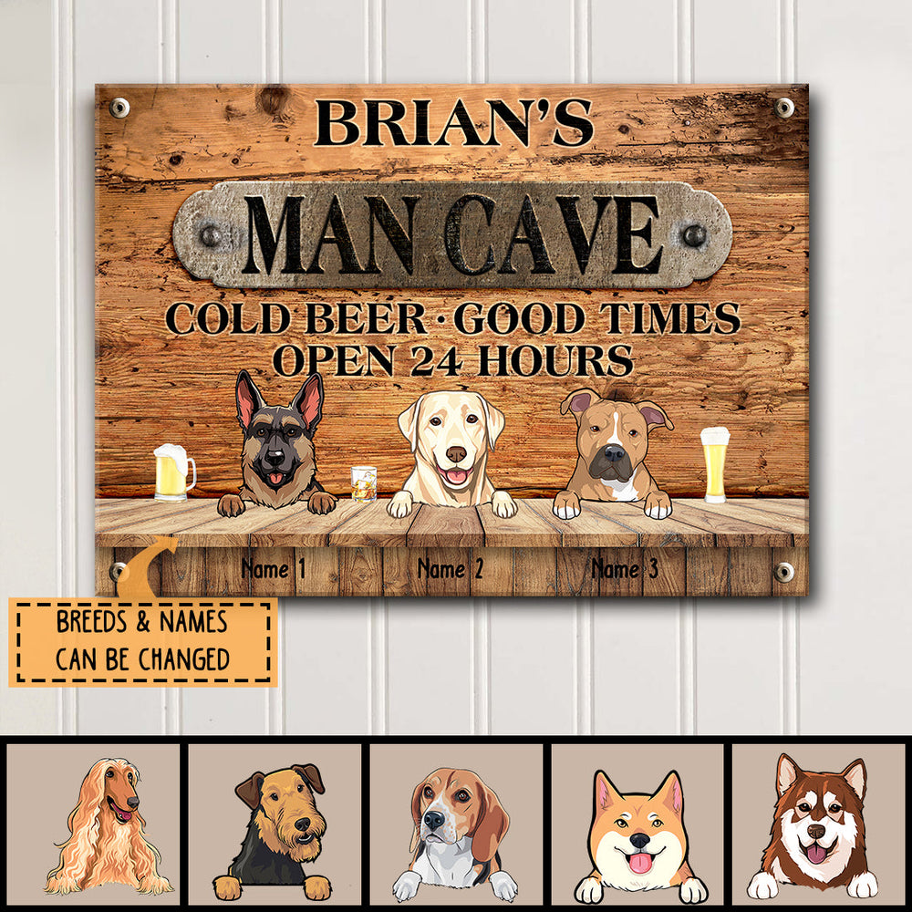 Man Cave Cold Beer Good Times Open 24 Hours, Dog & Beverage Sign, Personalized Dog Breeds Metal Sign, Bar Decor