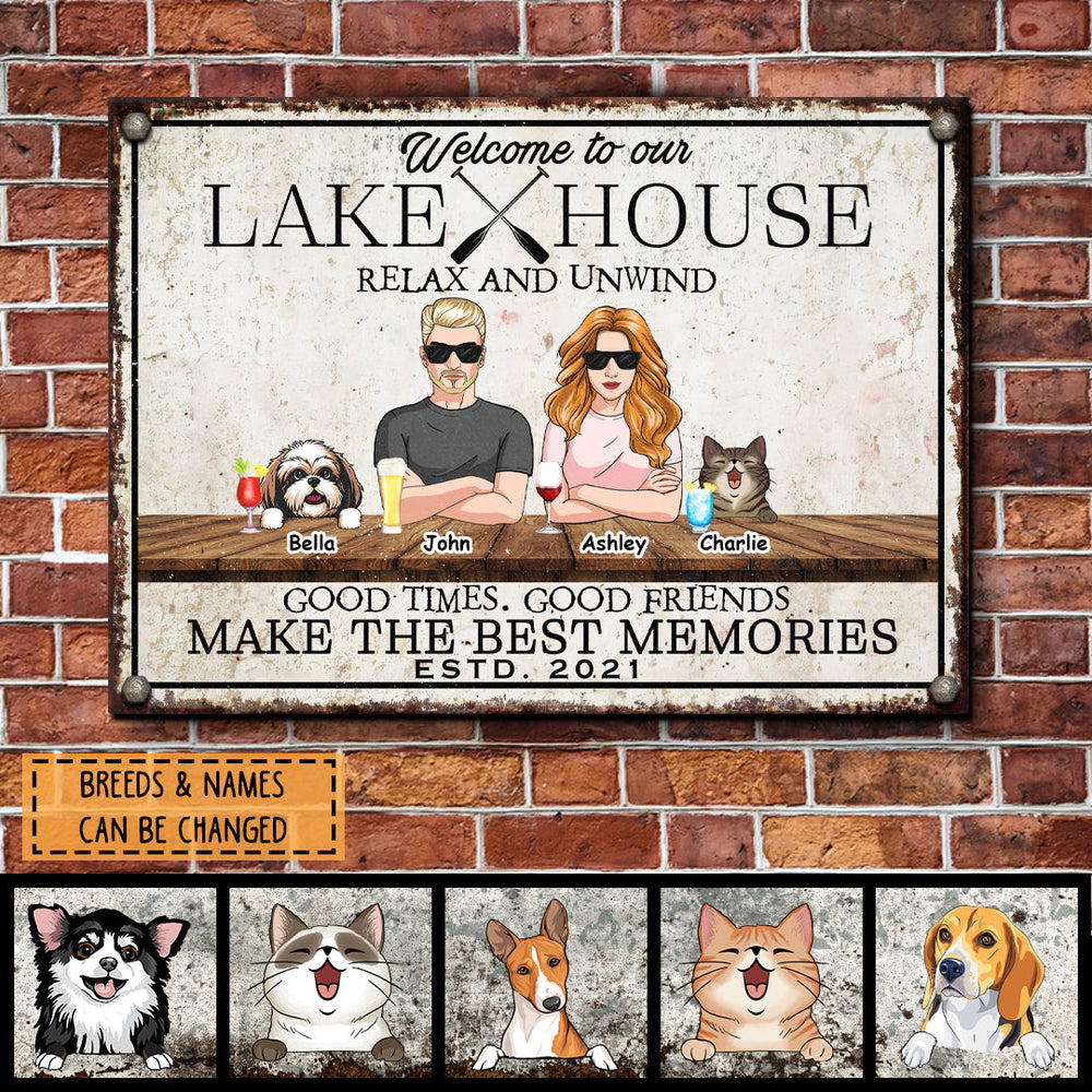 Metal Lake House Sign, Gifts For Pet Lovers, Relax And Unwind Good Times Good Friends Personalized Family Sign