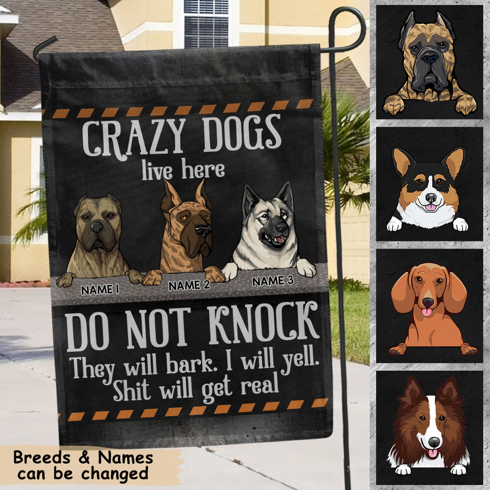 Personalized Dog Breeds Garden Flag, Gifts For Dog Lovers, Crazy Dogs Live Here Do Not Knock They Will Bark