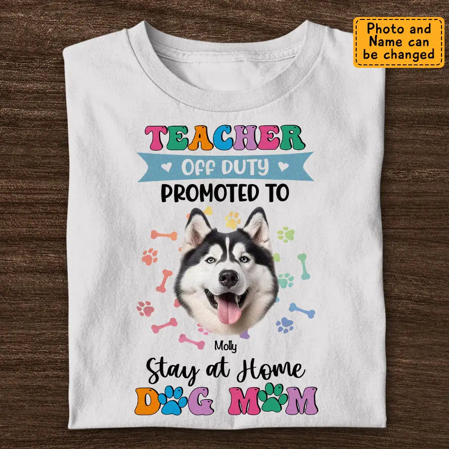 Teacher off Duty Promoted to Stay at Home Dog Mom - Personalized T-Shirt - Dog Lovers TS - TT3539