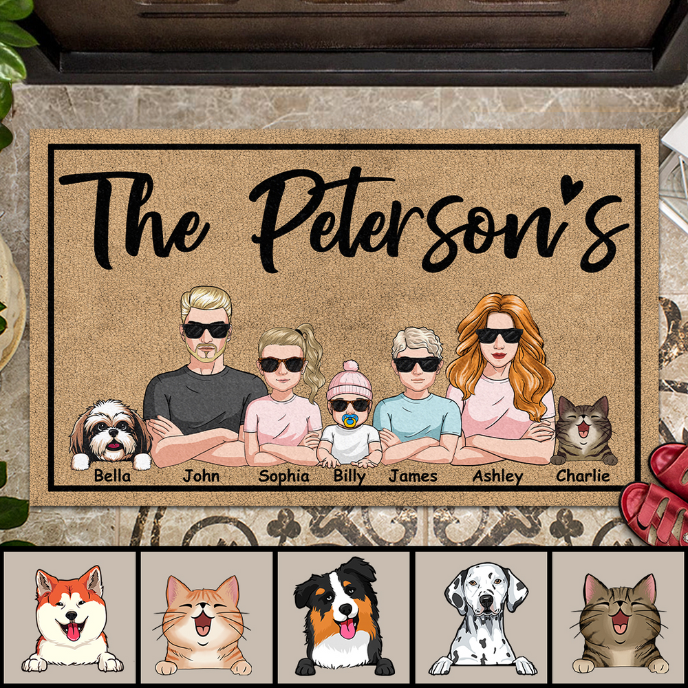 The Peterson's, Home Decor,Welcome Mat, Cool Family Gift, Funny Welcome Mat, Personalized Dog & Cat Lovers Doormat