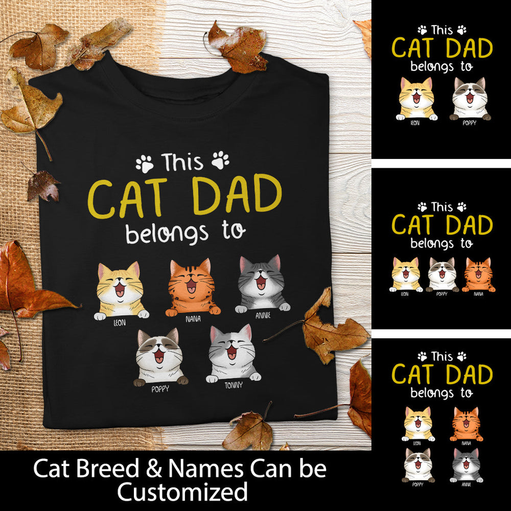 This Cat Dad Belongs To - Personalized Peeking Cats T-shirt