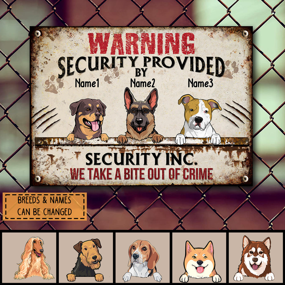 Warning Security Provided By Security Inc, Warning Sign, Personalized Dog Breeds Metal Sign, Gifts For Dog Lovers