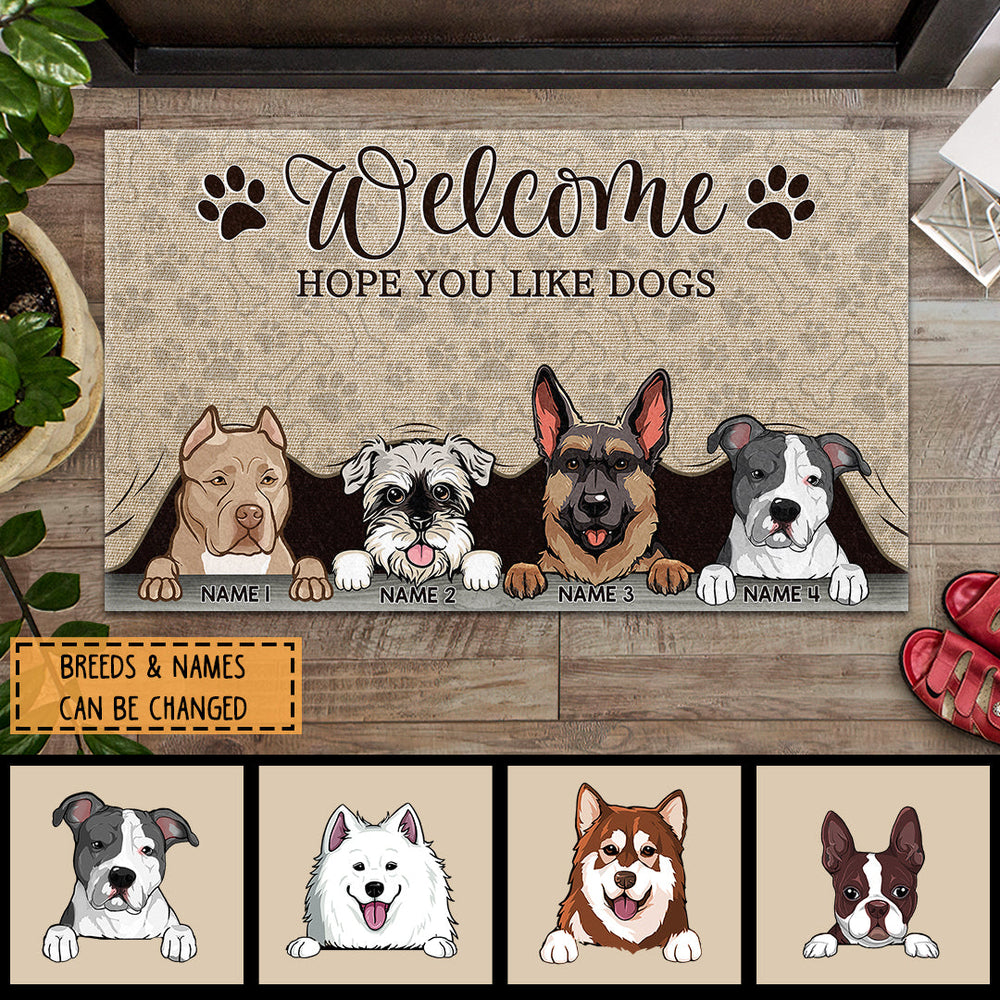 Welcome Hope You Like Dogs, Dog Peeking From Curtain, Personalized Dog Breeds Doormat, Home Decor, Gifts For Dog Lovers