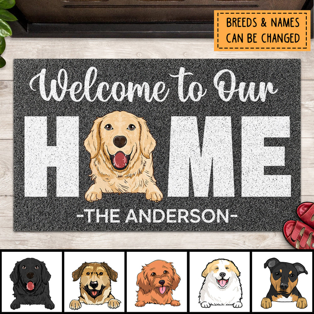 Welcome To Our Home, Grey Doormat, Personalized Dog Breeds Doormat, Home Decor, Gifts For Dog Lovers
