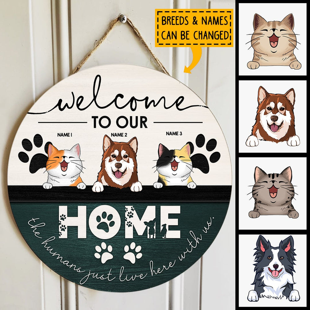 Welcome To Our Home, Welcome Sign, Personalized Dog & Cat Door Sign, Gifts For Pet Lovers, Front Door Decor