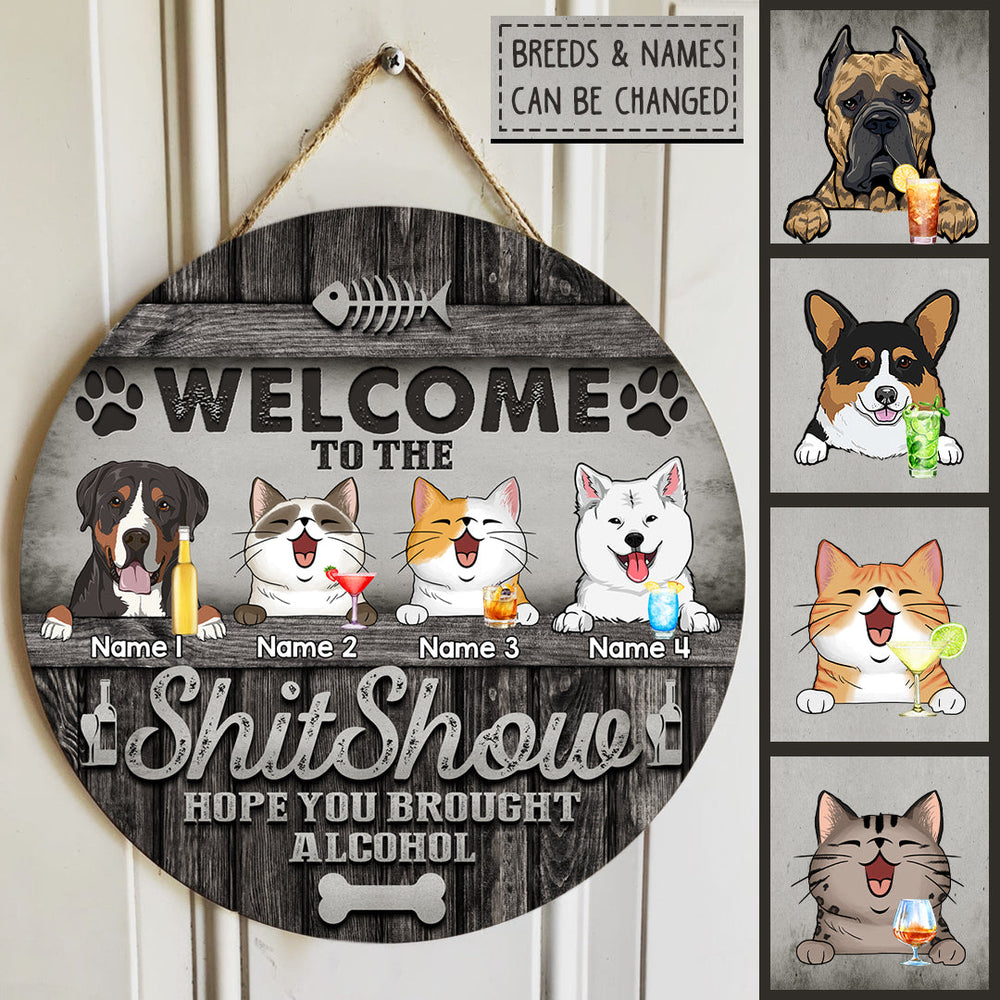 Welcome To The Shitshow Custom Wooden Signs, Gifts For Pet Lovers, Dark Personalized Wood Sign