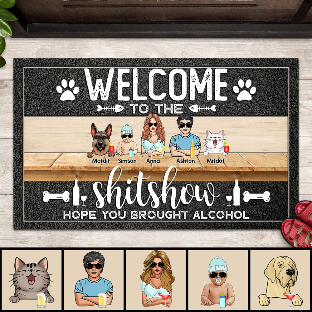 Welcome To The Shitshow Hope You Brought Alcohol, Cool Style Family, Personalized Dog & Cat Doormat