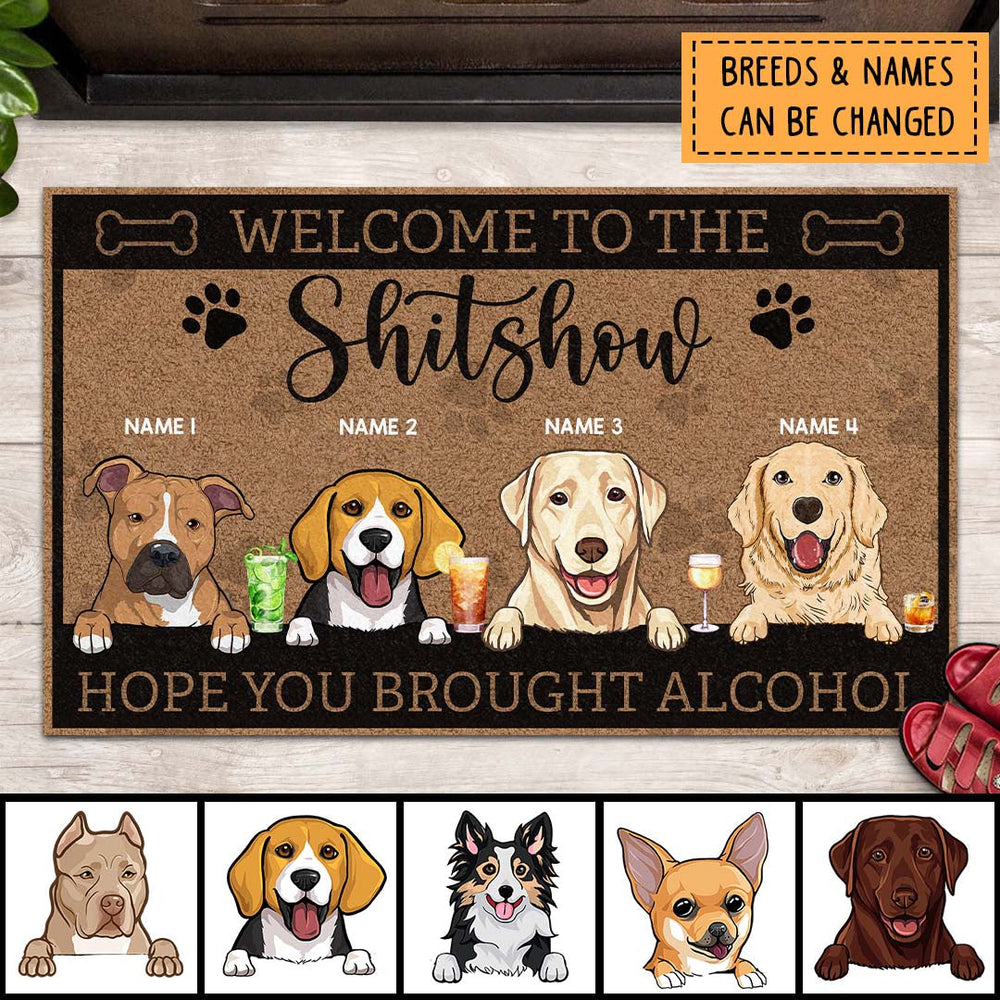 Welcome To The Shitshow Hope You Brought Alcohol, Dog & Beverage, Personalized Dog Breeds Doormat, Funny Home Decor