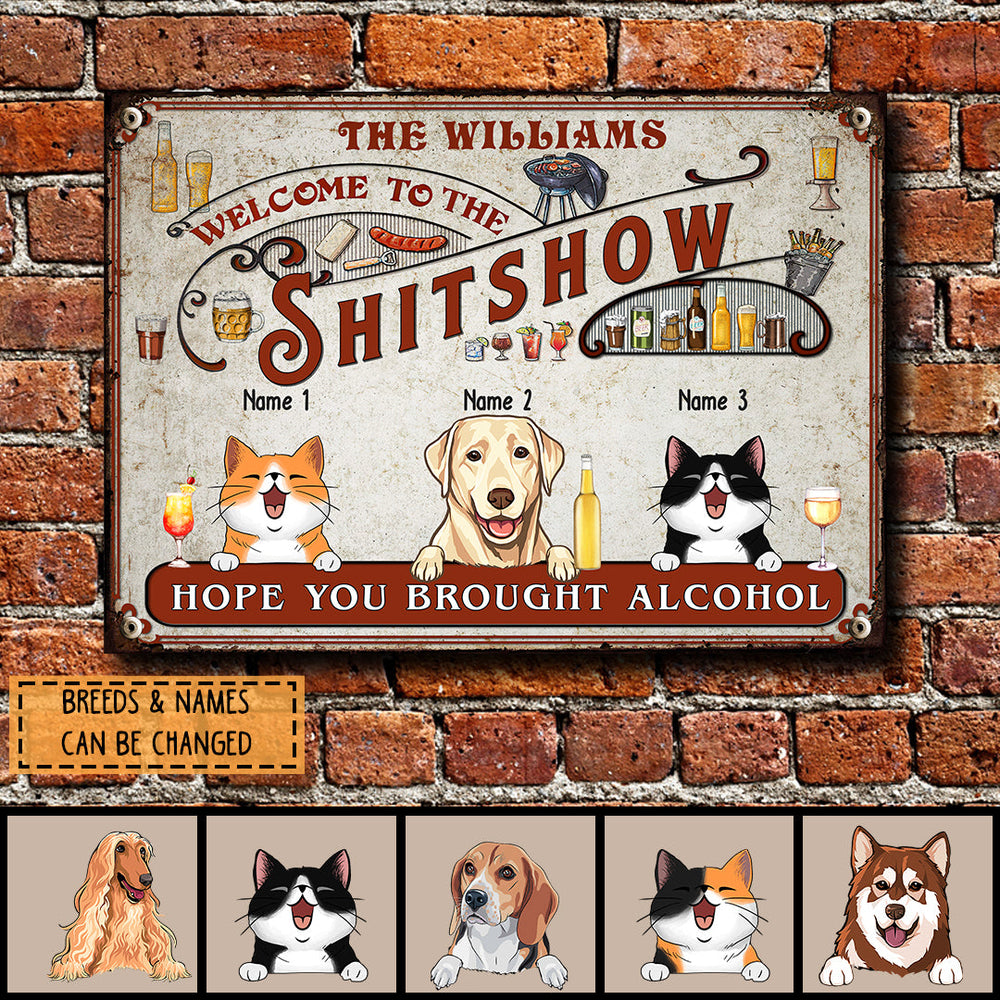 Welcome To The Shitshow Metal Yard Sign, Gifts For Pet Lovers, Hope You Brought Alcohol Kitchen Signs